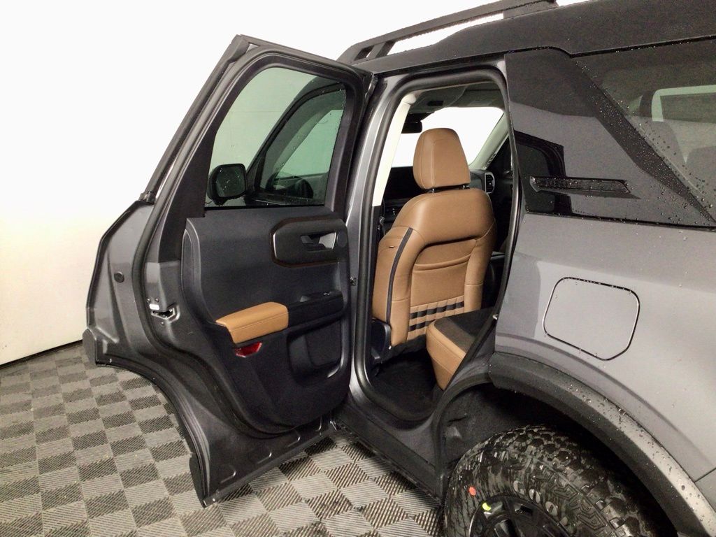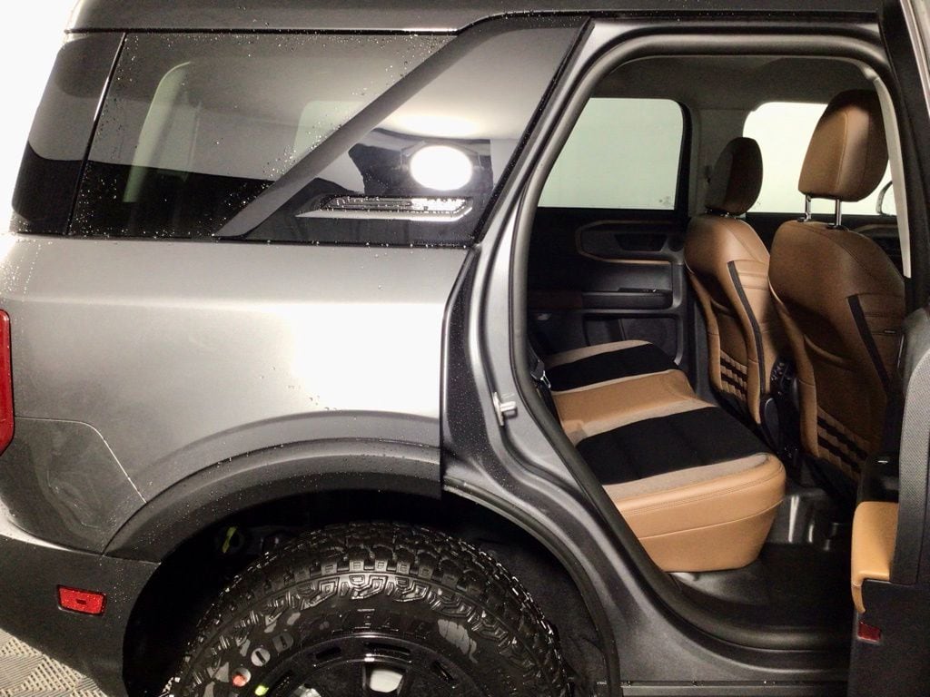 Bronco Sport Outer Banks, 4WD, 110V/400W AC Power Outlet, 2nd Row Carpeted Seatback, Auto-dimming Rear-View mirror, Automatic temperature control, Auxiliary Switches & Wiring, B&O Sound System by Bang & Olufsen, Brush Guard, Class II Trailer Tow Pack w/Trailer Sway Control, Connected Navigation, Equipment Group 300A, Fender Tie Downs, Front & Rear Black Bumpers, Front Driver/Passenger Seat Back Map Pockets, Fully automatic headlights, Garage Door Transmitter, HD Radio, Heated front seats, Heated steering wheel, High Clearance Fender Flares, HOSS 2.0 Off-Road Suspension, Interior Grab Handle, Memory seat, Outer Banks Tech Package+, Power driver seat, Power passenger seat, Premium Trimmed Front Bucket Seats w/Ebony/Roast, Rain Sensing Wipers, Recovery Hooks, Remote Keyless Entry, Sasquatch Outer Banks Package, Steering wheel mounted audio controls, SYNC 4 w/Enhanced Voice Recognition, Trail Control for Off-Road, Wheels: 17" Ebony Black-Painted Aluminum.