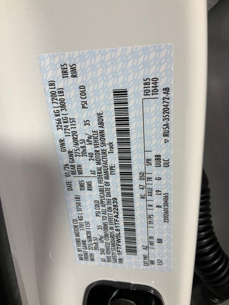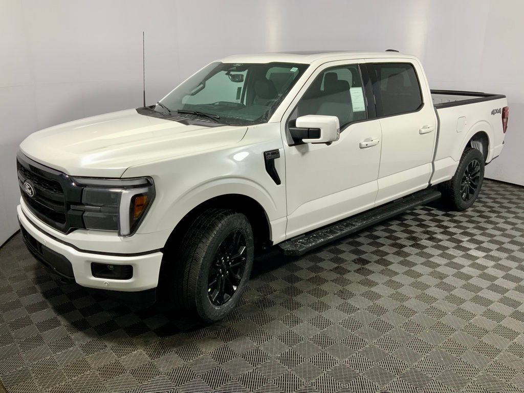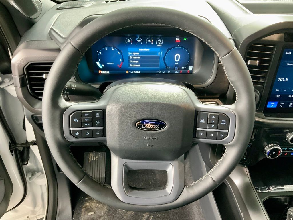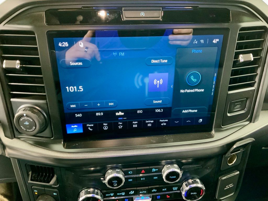 F-150 Lariat, 4D SuperCrew, 4WD, 2nd Row Heated Seats, ActiveX Trimmed Bucket Seats, Ambient Lighting - Ice Blue Color Only, Black Exterior Badging, Black Grille, Black Taillamp Bezels, Body-Color Front and Rear Bumpers, Console Worksurface, Dark Interior Appliques, Dual-Zone Automatic Temperature Control, Electronic Locking with 3.55 Axle Ratio, Equipment Group 502A High, Fully automatic headlights, Gray Box Side Decal, Head-Up Display, Heated door mirrors, Illuminated Driver and Passenger Visors, Lariat Black Appearance Package, Matte Black Tailgate F-150 Decal, Mobile Office Package, Navigation system: Connected Navigation, Partitioned Lockable Rear Storage, Power driver seat, Power-Adjustable Pedals with Memory, Power-Sliding Rear Window, Radio: B&O Unleashed Sound System by Bang & Olufsen, Rain Sensing Wipers, Remote Keyless Entry, Speed control, Steering wheel mounted audio controls, Twin Panel Moonroof, Ventilated front seats, Wheels: 20" Aluminum Wheels, Wireless Charging.