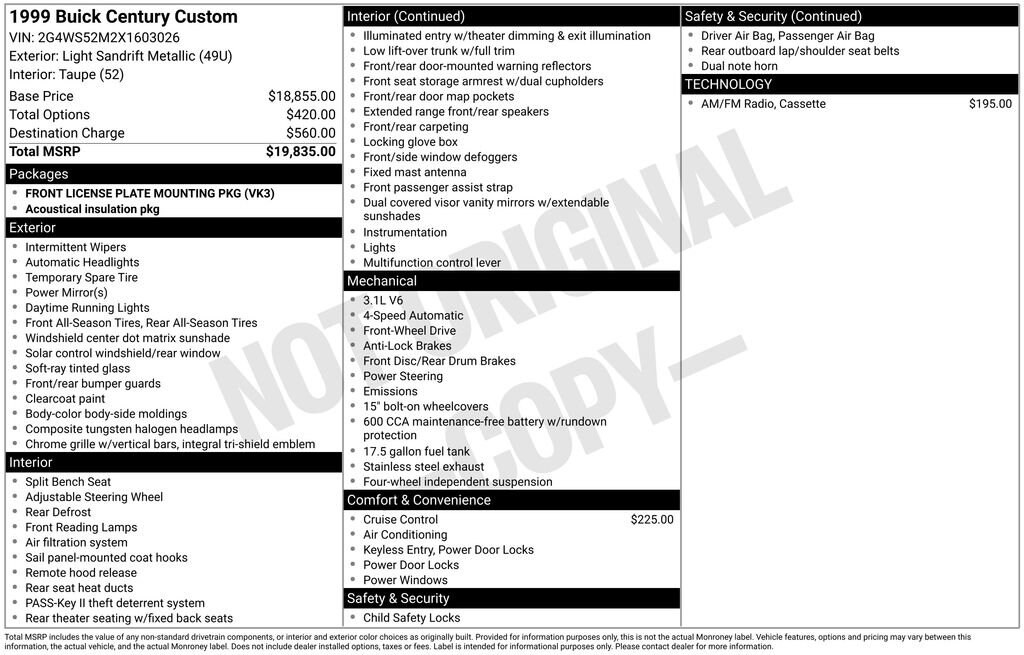 1999 Buick Century Custom Sedan 6