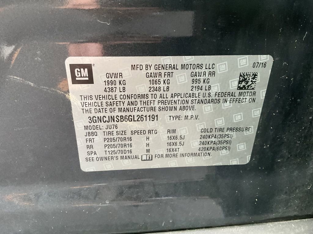 Chevrolet MyLink AM/FM Stereo With 6-Speaker Audio System, Bluetooth Connectivity, Remote Keyless Entry, Cruise Control, Air Conditioning With Cabin Filtration, And Power Windows With Express Down Function. The Cabin Combines Practical Design And Everyday Comfort With Premium Cloth Bucket Seats Featuring Driver Power Lumbar Adjustment, Large Glove Box, Dual-Level Storage Compartments, Covered Bin On Top Of Center Stack, Cargo Security Cover, And Rear Storage Tray Beneath The Floor For Added Utility. Additional Features Include Manual Day/Night Rearview Mirror, Driver Information Center, Rear Vision Camera, Illuminated Cargo Area, And Satin Silver Shift Knob Trim. The Exterior, Finished In Cyber Gray Metallic, Projects A Confident, Modern Look With 16-Inch Painted Aluminum Wheels, Body-Color Door Handles, Black Side Glass Moldings, Solar-Absorbing Windshield And Glass, And Halogen Headlamps With Automatic Exterior Lamp Control. Power Comes From The 1.4L ECOTEC Turbocharged 4-Cylinder Engine Producing 138 Horsepower And 148 Lb-Ft Of Torque, Paired With A 6-Speed Automatic Transmission And All-Wheel Drive System For Confident Traction And Efficiency. The Suspension Is Tuned For Balanced Ride And Handling, Complemented By 4-Wheel Disc Anti-Lock Brakes And Electric Power Steering. Safety Features Include 10 Airbags, StabiliTrak Stability Control With Traction Control, Tire Pressure Monitoring, Daytime Running Lamps, Child Safety Rear Door Locks, And LATCH Anchors For Child Seats. Combining Compact Efficiency, Smart Connectivity, And Urban Versatility, This SUV Offers The Perfect Blend Of Comfort, Capability, And Everyday Practicality..