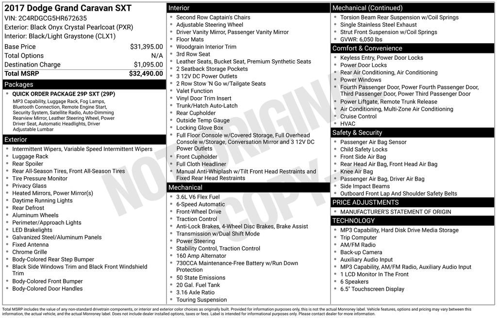 A short drive from Athens, Cambridge, Chillicothe, Circleville, Columbus, Lancaster, Logan, Marietta, Nelsonville, Newark, Pickerington, Sandusky, and Zanesville in Ohio, as well as Charleston, Clarksburg, Huntington, Morgantown, Parkersburg, Vienna, and Wheeling in West Virginia. 27350 Darl Rd. Rockbridge, OH 43149. Located in the Hocking Hills! Close to Ohio University! Vehicle: 2017 Dodge Grand Caravan SXT Price: 8999 (live market adjusted) CarFax: True, available today Stock#: J634190PAT | VIN Ending: 2C4RDGCG5HR672635 Delivery: Nationwide delivery available.