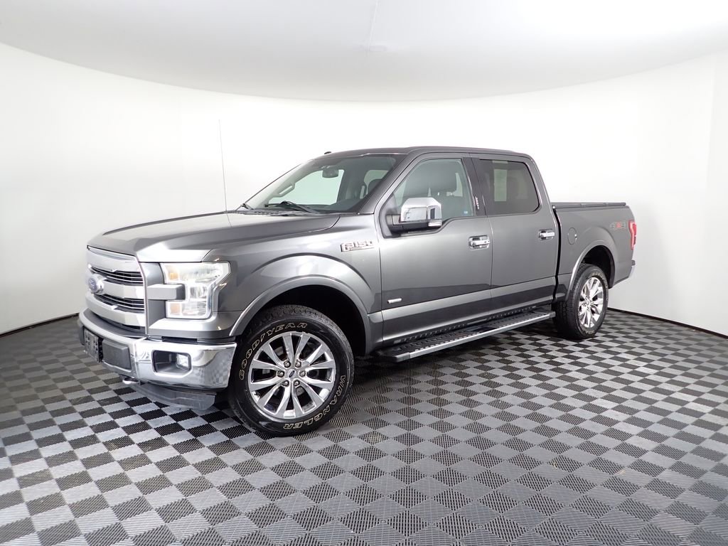 Clean CARFAX! This Ford F-150 Lariat has many features and is well equipped including, Power Moonroof, Heated Seats, Ventilated Seats, Leather Seats, Navigation, Blind Spot Monitoring, Integrated Trailer Brake Controller, 4-Wheel Drive, 110V/400W Outlet, 20 Chrome-Like PVD Wheels, 7 Speakers, Air Conditioning, Auxiliary Transmission Oil Cooler, BLIS Blind Spot Information System, Chrome 3-Bar Style Grille w/Chrome Surround, Chrome Angular Step Bars, Chrome Door & Tailgate Handles w/Body-Color Bezel, Chrome Skull Caps on Exterior Mirrors, Class IV Trailer Hitch Receiver, Electronic Locking w/3.73 Axle Ratio, Electronic Stability Control, Equipment Group 501A Mid, Extended Range 36 Gallon Fuel Tank, Exterior Parking Camera Rear, Fully automatic headlights, Heated front seats, Integrated Trailer Brake Controller, Lariat Chrome Appearance Package, Leather-Trimmed 40/20/40 Front Seat, LED Side-Mirror Spotlights, Max Trailer Tow Package, Memory seat, Pedal memory, Power Glass Sideview Mirr w/Body-Color Skull Caps, Pro Trailer Backup Assist, Radio: Single-CD w/SiriusXM Satellite, Remote Start System w/Remote Tailgate Release, Reverse Sensing System, Single-Tip Chrome Exhaust, SYNC 3, Universal Garage Door Opener, Upgraded Front Stabilizer Bar, Ventilated front seats, Voice-Activated Navigation.