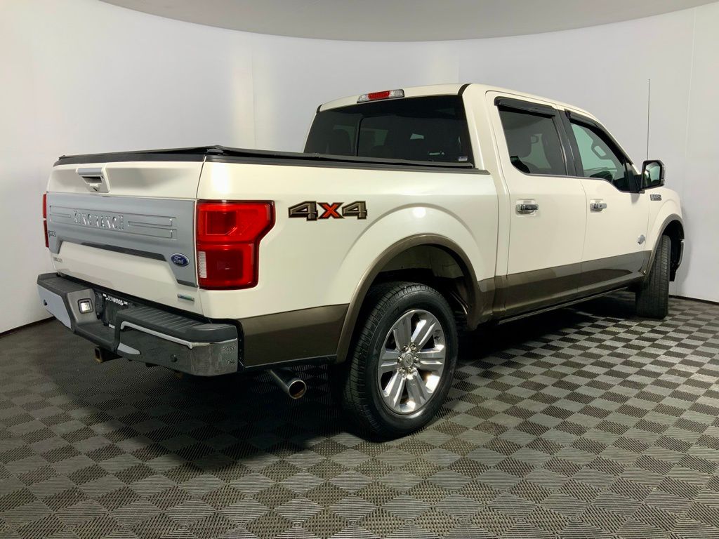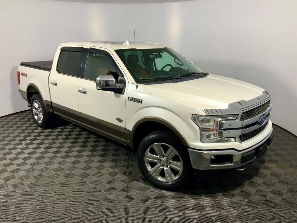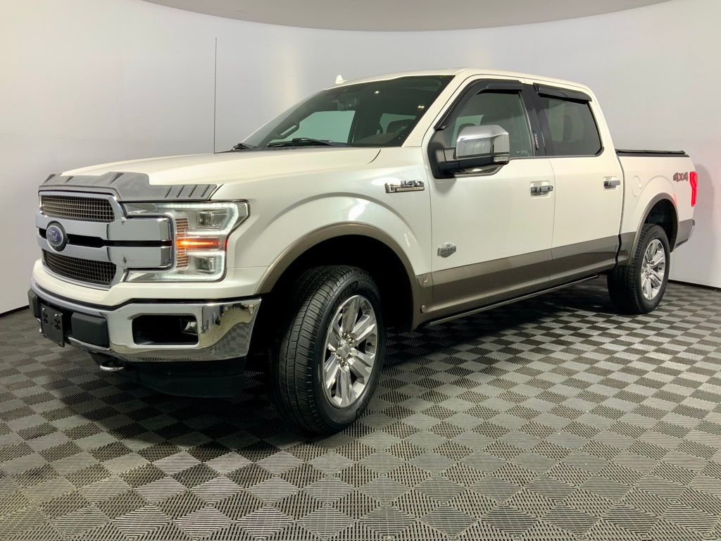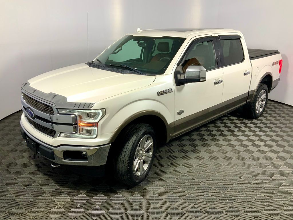This Ford F-150 King Ranch has many features and is well equipped including, Touchscreen Infotainment, Twin-Panel Moonroof, Heated Steering Wheel, Heated Seats, Ventilated Seats, Leather Seats, Captain's Chairs, 4-Wheel Drive, Backup Camera, 3.5L V6 EcoBoost, 10 Speakers, 20" Chrome-Like PVD Wheels, Active Park Assist, Adaptive Cruise Control, Adjustable pedals, Air Conditioning, AppLink/Apple CarPlay and Android Auto, Auto High-beam Headlights, Auto-dimming door mirrors, Automatic temperature control, BLIS Blind Spot Information System, Brake assist, Bright Belt Moldings, Chrome Door Handles w/Body-Color Strap, Chrome Front & Rear Bumpers, Chrome Skull Caps on Exterior Mirrors, Dual-Zone Automatic Temperature Control, Electronic Locking w/3.73 Axle Ratio, Electronic Stability Control, Equipment Group 601A Luxury, Extended Range 36 Gallon Fuel Tank, Front Bucket Seats, Front Center Armrest, Fully automatic headlights, Heated door mirrors, Heated front seats, Heated Rear Seats, Heated steering wheel, Inflatable Rear Safety Belts, Integrated Trailer Brake Controller, King Ranch Chrome Appearance Package, Lane-Keeping System, Max Trailer Tow Package, Memory seat, Multi-Contour Driver & Passenger Seats, Pedal memory, Power door mirrors, Power passenger seat, Power-Deployable Running Boards, Radio: B&O Sound System by Bang & Olufsen, Remote Keyless Entry, SiriusXM Radio, Speed control, Split folding rear seat, Steering wheel memory, Steering wheel mounted audio controls, SYNC 3, Tailgate Step w/Tailgate Lift Assist, Technology Package, Tough Bed Spray-In Bedliner, Twin Panel Moonroof, Ventilated front seats, Voice-Activated Touchscreen Navigation, Wheels: 20" Aluminum Wheels.