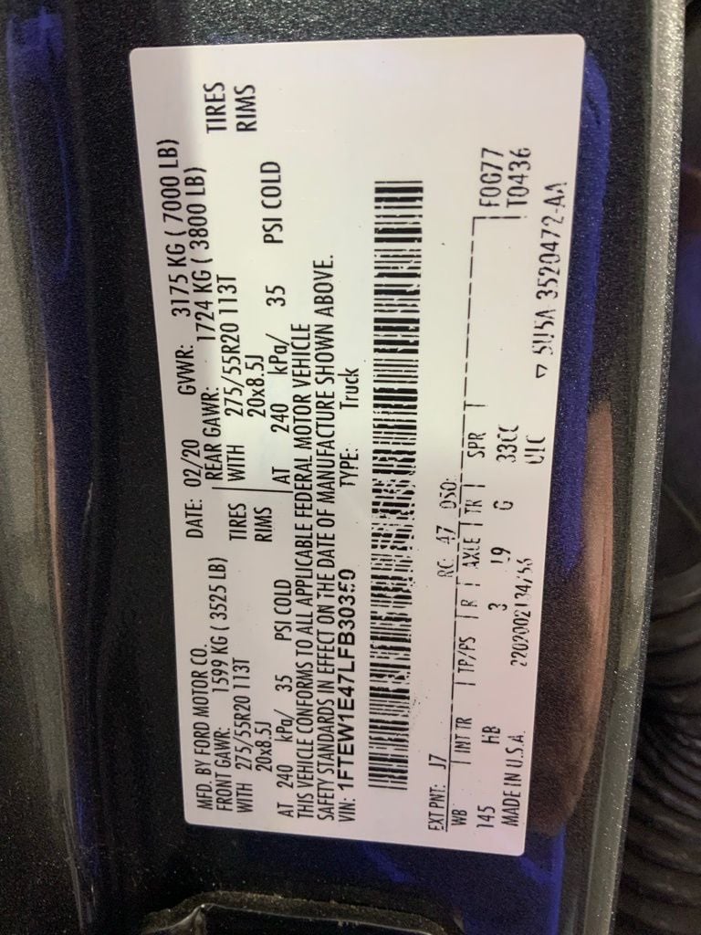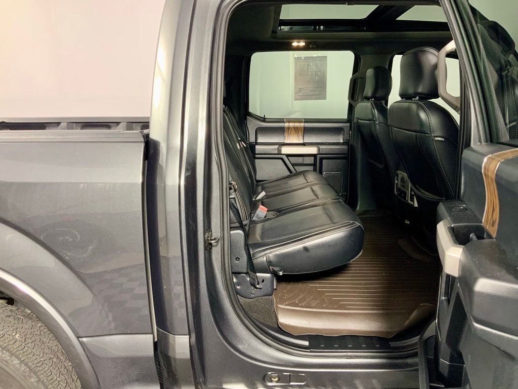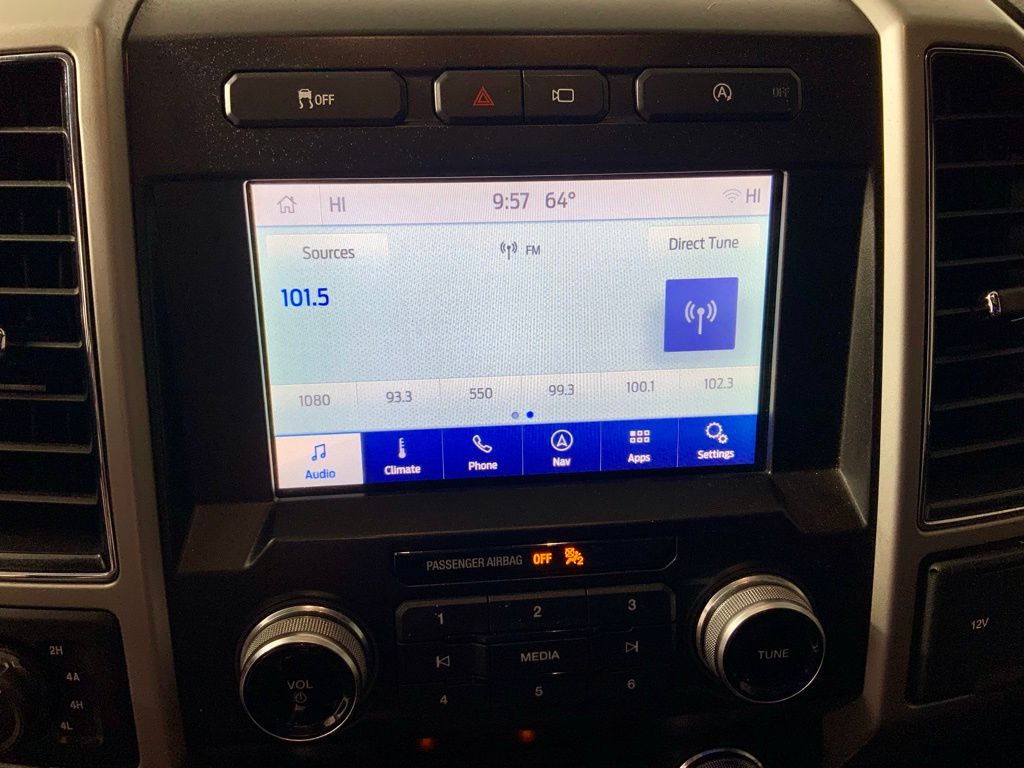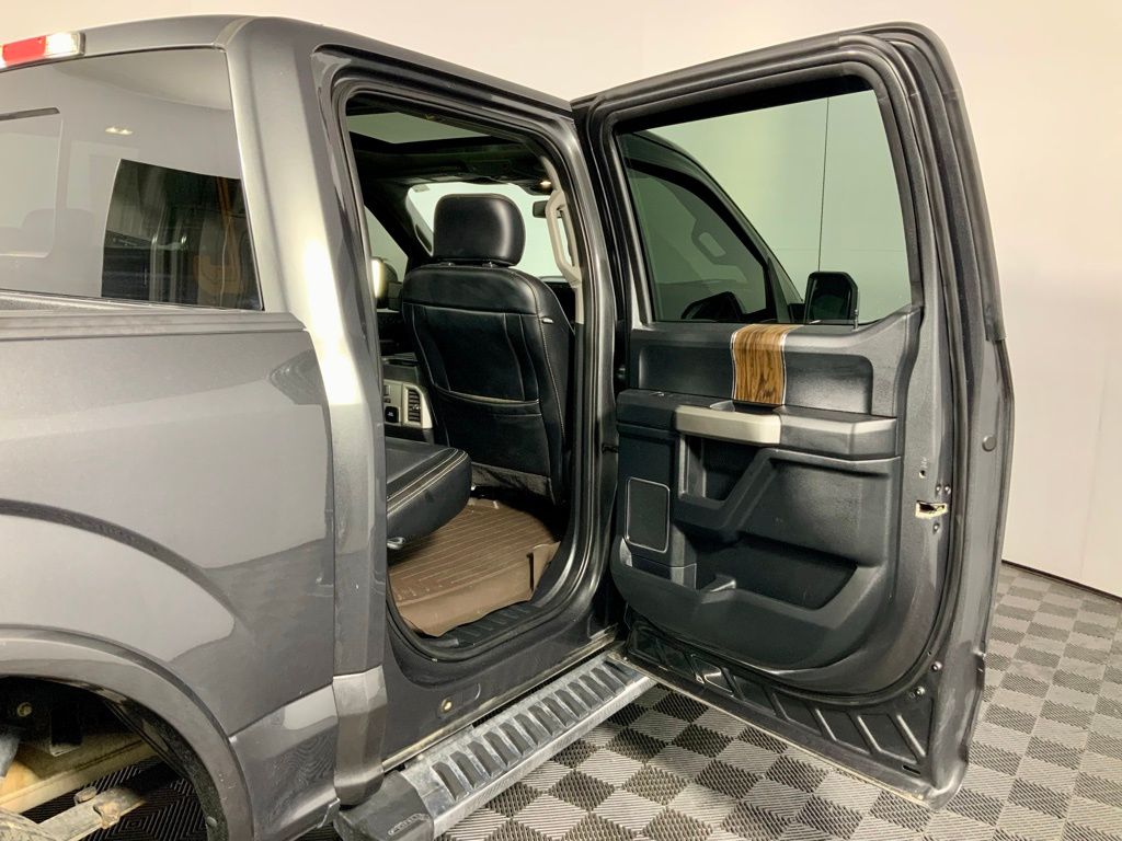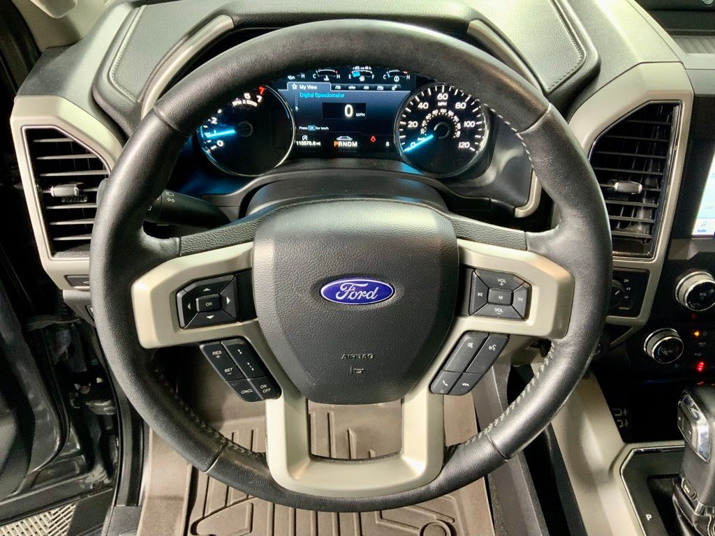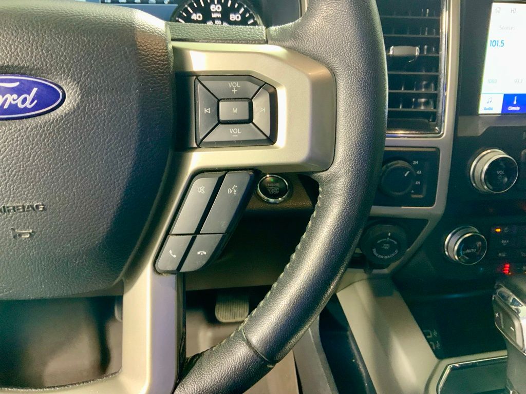 This Ford F-150 Lariat has many features and is well equipped including, Power Moonroof, Heated Steering Wheel, Heated Seats, Leather Seats, Remote Vehicle Start, Navigation, 360 Degree Backup Camera, 4-Wheel Drive, 110V/400W Outlet, 2nd Row Heated Seats, 360 Camera w/Split-View Display, 4-Wheel Disc Brakes, 7 Speakers, ABS Brakes, Active Park Assist, Adaptive Cruise Control, Adjustable pedals, Air Conditioning, Alloy wheels, AM/FM Radio: SiriusXM, Auto High-beam Headlights, Auto-dimming door mirrors, Auto-dimming Rear-View mirror, Automatic temperature control, Brake assist, Chrome Door & Tailgate Handles w/Body-Color Bezel, Chrome Skull Caps on Exterior Mirrors, Class IV Trailer Hitch Receiver, Compass, Delay-off headlights, Dual front side impact airbags, Dual-Zone Automatic Temperature Control, Electronic Stability Control, Emergency Communication System: SYNC 3 911 Assist, Engine Oil Cooler, Equipment Group 502A Luxury, Extended Range 36 Gallon Fuel Tank, Exterior Parking Camera Rear, Front reading lights, Front wheel independent suspension, Fully automatic headlights, Heated door mirrors, Heated front seats, Heated Steering Wheel, Illuminated entry, Integrated Trailer Brake Controller, Lariat Bed Utility Package, Lariat Chrome Appearance Package, Leather-Trimmed 40/20/40 Front Seat, Leather-Trimmed Bucket Seats, LED Sideview Mirror Spotlights, Low Tire Pressure Warning, Memory seat, Navigation System, Outside temperature display, Overhead console, Panic Alarm, Passenger vanity mirror, Pedal memory, Power driver seat, Power Glass Sideview Mirr w/Body-Color Skull Caps, Power Glass Sideview Mirr w/Chrome Skull Caps, Power passenger seat, Power Tilt/Telescoping Steering Column w/Memory, Power windows, Pro Trailer Backup Assist, Quad Beam LED Headlamps & LED Taillamps/Fog Lamps, Radio: AM/FM Stereo w/6 Speakers, Radio: B&O Sound System by Bang & Olufsen, Rain-Sensing Wipers, Rear reading lights, Rear step bumper, Remote Keyless Entry, Remote Start System w/Remote Tailgate Release, Reverse Sensing System, Security System, SiriusXM Radio, Speed control, Speed-Sensing Steering, Split folding rear seat, SYNC 3, Tailgate Step w/Tailgate Lift Assist, Technology Package, Telescoping Steering Wheel, Traction Control, Trailer Tow Package, Trip Computer, Twin Panel Moonroof, Universal Garage Door Opener, Upgraded Front Stabilizer Bar, Ventilated front seats, Voice-Activated Touchscreen Navigation, Wheels: 20" Aluminum Wheels, Windshield Wiper De-Icer.