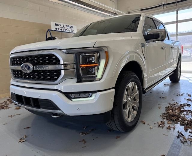 4WD, This Ford F-150 Platinum has many features and is well equipped including, Apple CarPlay, Power Moonroof, Heated Steering Wheel, Heated Seats, Ventilated Seats, Leather Seats, Remote Vehicle Start, Navigation, Great Price, Backup Camera, 20" Polished Aluminum Wheels, 3.31 Rear Axle Ratio, 4-Wheel Disc Brakes, 8 Speakers, Adjustable pedals, Air Conditioning, AM/FM radio: SiriusXM with 360L, Auto High-beam Headlights, Auto tilt-away steering wheel, Auto-dimming door mirrors, Auto-dimming Rear-View mirror, Automatic temperature control, Delay-off headlights, Driver vanity mirror, Dual-Zone Automatic Temperature Control, Emergency communication system: SYNC 4 911 Assist, Exterior Parking Camera Rear, Front fog lights, Front reading lights, Fully automatic headlights, Garage Door Transmitter, Heated door mirrors, Heated front seats, Heated Rear Seats, Heated steering wheel, Integrated Trailer Brake Controller, Memory seat, Navigation system: Connected Navigation (90-Day Trial), Outside temperature display, Overhead console, Pedal memory, Power door mirrors, Power passenger seat, Radio: B&O Sound System by Bang & Olufsen, Rain Sensing Wipers, Rear reading lights, Rear seat center armrest, Rear window defroster, Remote Keyless Entry, Speed control, Split folding rear seat, Steering wheel memory, Steering wheel mounted audio controls, SYNC 4 w/Enhanced Voice Recognition, Telescoping Steering Wheel, Tilt Steering Wheel, Trip Computer, Unique Multi-Contour Leather Bucket Seats, Ventilated front seats.