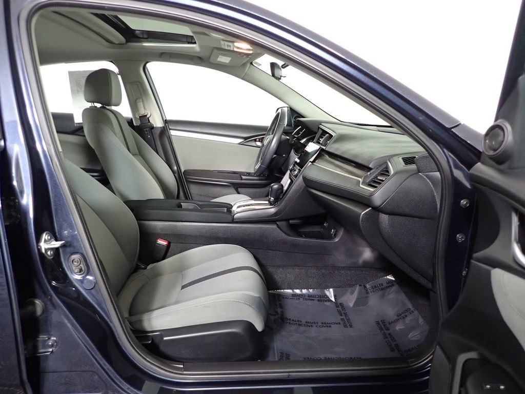 CARFAX One-Owner! This Honda Civic EX has many features and is well equipped including, Apple CarPlay, Power Moonroof, Heated Seats, Backup Camera, 7-inch display w/high-resolution electrostatic touch-screen, 8 Speakers, Adaptive Cruise Control: Adaptive Cruise Control (ACC) with Low-Speed Follow, Air Conditioning, Apple CarPlay/Android Auto, Auto High-beam Headlights, Brake assist, Dual-Zone Automatic Temperature Control, Electronic Stability Control, Exterior Parking Camera Rear, Forward collision: Collision Mitigation Braking System (CMBS) + FCW mitigation, Front Bucket Seats, Front Center Armrest, Fully automatic headlights, Heated door mirrors, Heated Front Bucket Seats, Heated front seats, Lane departure: Lane Keeping Assist System (LKAS) active, Leather Shift Knob, Overhead console, Panic Alarm, Panoramic Power Moonroof, Power door mirrors, Power driver seat, Power windows, Radio data system, Remote Keyless Entry, Security System, Speed control, Speed-Sensitive Wipers w/Heated Jets, Split folding rear seat, Steering wheel mounted audio controls.