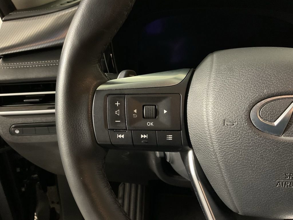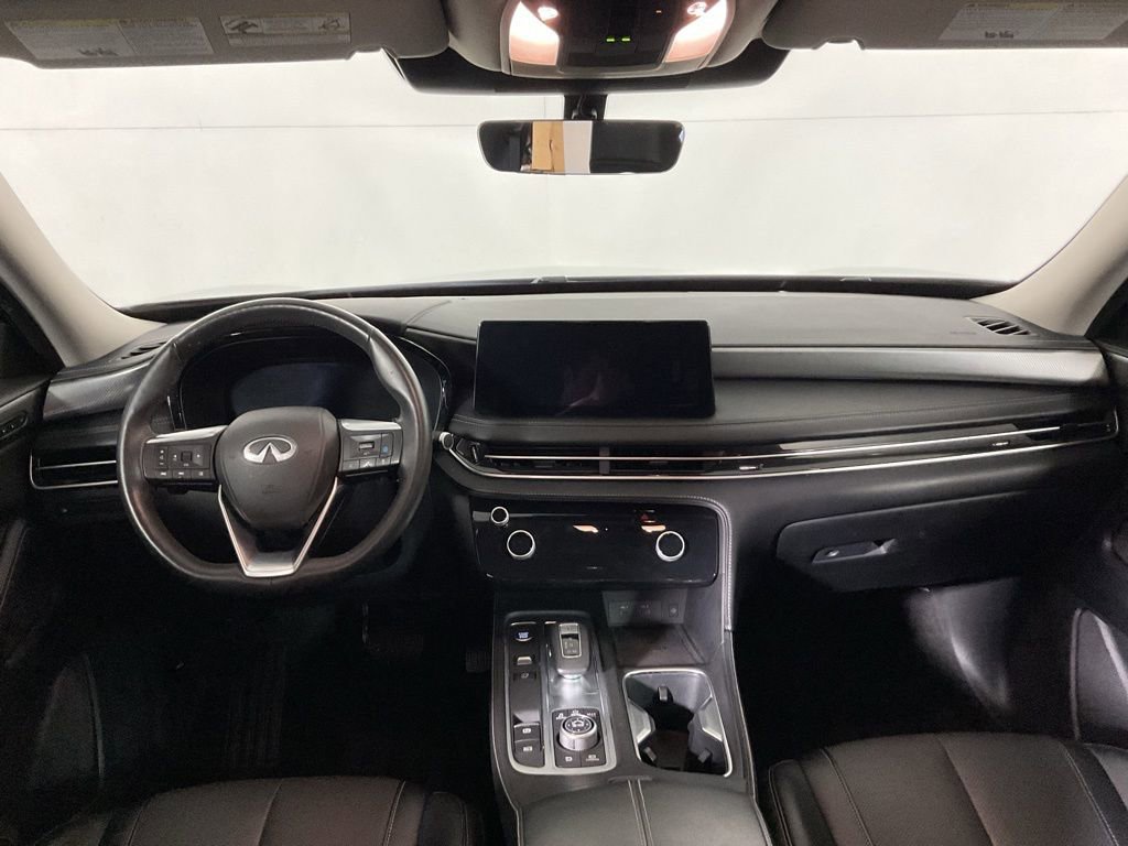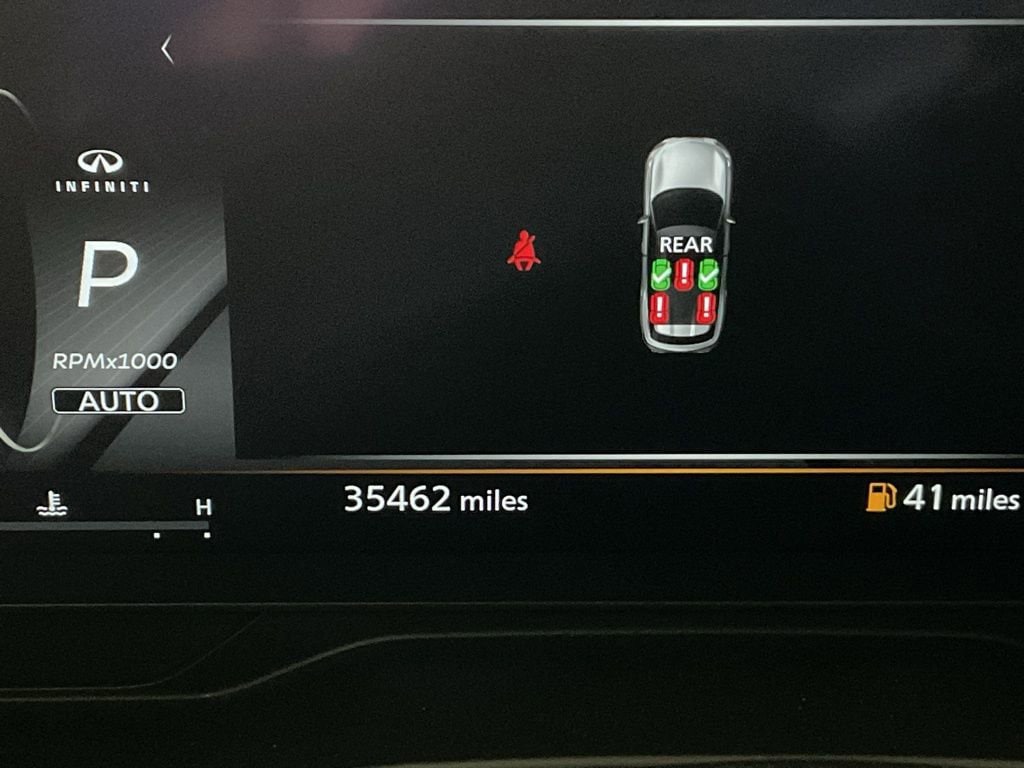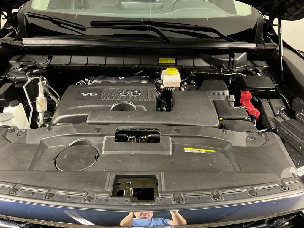 Clean CARFAX!, CARFAX One-Owner!, 3rd row seats: bench, Apple CarPlay/Android Auto, Auto High-beam Headlights, Auto-dimming Rear-View mirror, Automatic temperature control, Four wheel independent suspension, Heated front seats, Heated steering wheel, Leather steering wheel, Memory seat, Navigation system: INFINITI InTouch Navigation, Panoramic Power Moonroof, Power driver seat, Power Liftgate, Power passenger seat, Power windows, Radio: AM/FM Audio System, Reclining 3rd row seat, Security System, Spoiler, Steering wheel mounted audio controls, Turn signal indicator mirrors, Ventilated front seats, Wheels: 20" x 8J Sporty Machined Aluminum Alloy.