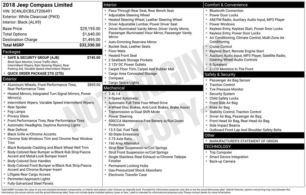 A short drive from Athens, Cambridge, Chillicothe, Circleville, Columbus, Lancaster, Logan, Marietta, Nelsonville, Newark, Pickerington, Pomeroy, and Zanesville in Ohio, as well as Charleston, Clarksburg, Huntington, Morgantown, Parkersburg, Vienna, and Wheeling in West Virginia. 2065 East State St. Athens, OH 45701. Near Ohio University! Down the road from Hocking Hills! Vehicle: 2018 Jeep Compass Limited Price: (live market adjusted) CarFax: True, available today Stock#: F8F0144AT VIN Ending: 3C4NJDCB5JT206491 Delivery: Nationwide delivery available.
