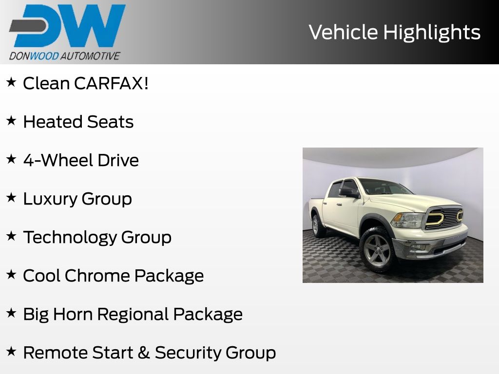 Clean CARFAX!, Heated Seats, 4-Wheel Drive, HEMI 5.7L V8 Multi Displacement VVT, 115V Auxiliary Power Outlet, 20" x 8" Aluminum Wheels, 20" x 9" Chrome Clad Aluminum Wheels, 6.5" Touch Screen Display, 9 Amplified Speakers w/Subwoofer, Anti-Spin Differential Rear Axle, Auto-Dimming Exterior Mirrors, Auto-Dimming Rear-View Mirror, Big Horn Regional Package, Bighorn Badge, Black Exterior Mirrors, Brake assist, Bright/Bright Billets Grille, Chrome Bodyside Molding, Cloth 40/20/40 Bench Seat, Cool Chrome Package, Delay-off headlights, Dual Rear Exhaust, Electronic Stability Control, Fog Lamps, Fully automatic headlights, Halogen Quad Headlamps, Heated door mirrors, Heated Front Seats, Luxury Group, Mopar Chrome Tubular Side Steps, Overhead console, Panic Alarm, ParkSense Rear Park Assist System, Power door mirrors, Power Heated Fold-Away Mirrors, Remote Start & Security Group, Remote Start System, Security Alarm, Speed control, Technology Group, Uconnect Phone w/Voice Command.