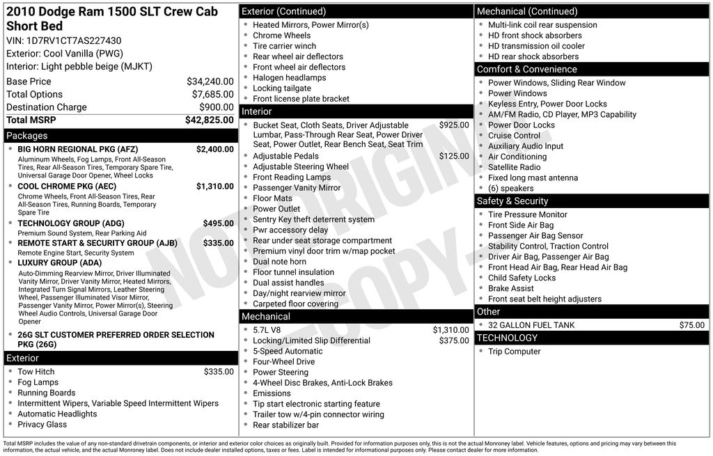 A short drive from Athens, Cambridge, Chillicothe, Circleville, Columbus, Lancaster, Logan, Marietta, Nelsonville, Newark, Pickerington, Pomeroy, and Zanesville in Ohio, as well as Charleston, Clarksburg, Huntington, Morgantown, Parkersburg, Vienna, and Wheeling in West Virginia. 2065 East State St. Athens, OH 45701. Near Ohio University! Down the road from Hocking Hills! Vehicle: 2010 Ram 1500 SLT Price: 10987 (live market adjusted) CarFax: True, available today Stock#: FA87542AT VIN Ending: 1D7RV1CT7AS227430 Delivery: Nationwide delivery available.