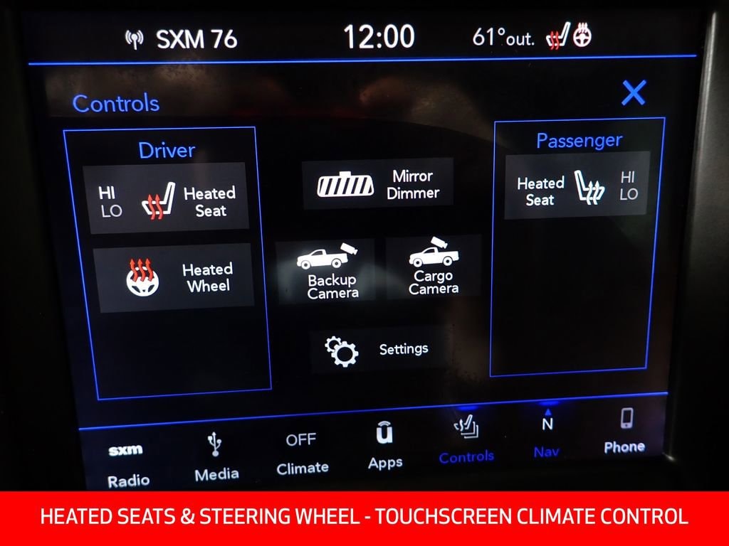 Brilliant Black Crystal Pearlcoat, Clean CARFAX!, Apple CarPlay, Heated Seats, Navigation, Backup Camera, ABS Brakes, Black Exterior Mirrors, Bumpers: chrome, Compass, Electronic Stability Control, Exterior Mirrors w/Heating Element, Heated door mirrors, Illuminated entry, Low Tire Pressure Warning, ParkView Rear Back-Up Camera, Remote Keyless Entry, Traction Control.