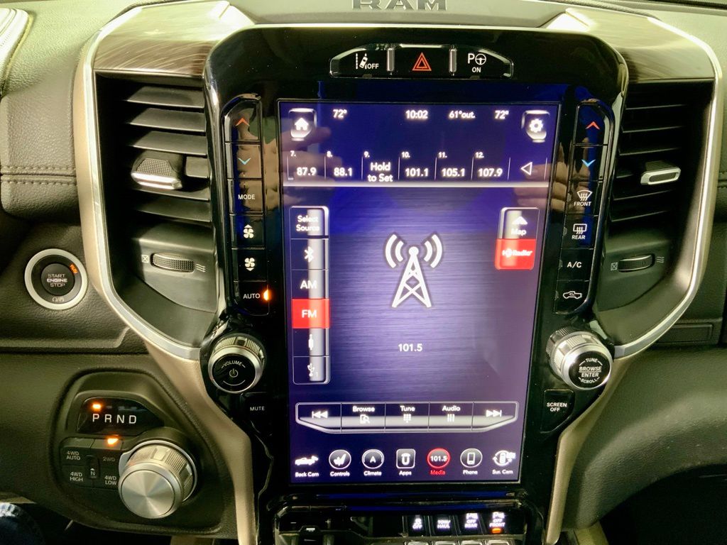 This Ram 1500 Laramie has many features and is well equipped including, Apple CarPlay, Power Moonroof, Heated Seats, Ventilated Seats, Leather Seats, Backup Camera, 10 Speakers, 4 Adjustable Cargo Tie-Down Hooks, 8.4" Touchscreen Display, Adaptive Cruise Control w/Stop & Go, Adjustable pedals, Advanced Brake Assist, Advanced Safety Group, Air Conditioning, AM/FM Radio: SiriusXM, Apple CarPlay, Apple CarPlay/Android Auto, Audio memory, Auto High Beam Headlamp Control, Auto-dimming door mirrors, Auto-dimming Rear-View mirror, Automatic temperature control, Bed Utility Group, Blind Spot & Cross Path Detection, Bright Day Light Opening Moldings, Chrome Appearance Group, Chrome Tow Hooks, Dome Dual LED Reading Lamp, Driver Seat Memory, Dual-Pane Panoramic Sunroof, Dual-Zone Automatic Temperature Control, Foam Bottle Insert (Door Trim Panel), Full Speed Forward Collision Warning Plus, Fully automatic headlights, Garage Door Transmitter, Google Android Auto, GPS Antenna Input, harman/kardon 19 Speaker Premium Sound, Heated & Ventilated Front Seats, Heated door mirrors, Heated front seats, Heated Second Row Seats, Heated Steering Wheel, Lane Keep Assist, Laramie Level 2 Equipment Group, Leather steering wheel, LED Dome/Reading Lamp, Memory seat, Parallel & Perp Park Assist w/Stop, ParkSense Front/Rear Park Assist w/Stop, ParkView Rear Back-Up Camera, Pedal memory, Pick-Up Box Lighting, Power door mirrors, Radio: Uconnect 4C Nav w/8.4" Display, Rain Sensitive Windshield Wipers, Rear 60/40 Folding Split Recline Seat, Rear Underseat Compartment Storage, Remote Keyless Entry, Remote Tailgate Release, Single Disc Remote CD Player, Spray In Bedliner, Steering wheel mounted audio controls, Tailgate Ajar Warning Lamp, Uconnect 4 w/8.4" Display, Wheel to Wheel Side Steps, Wireless Charging Pad.