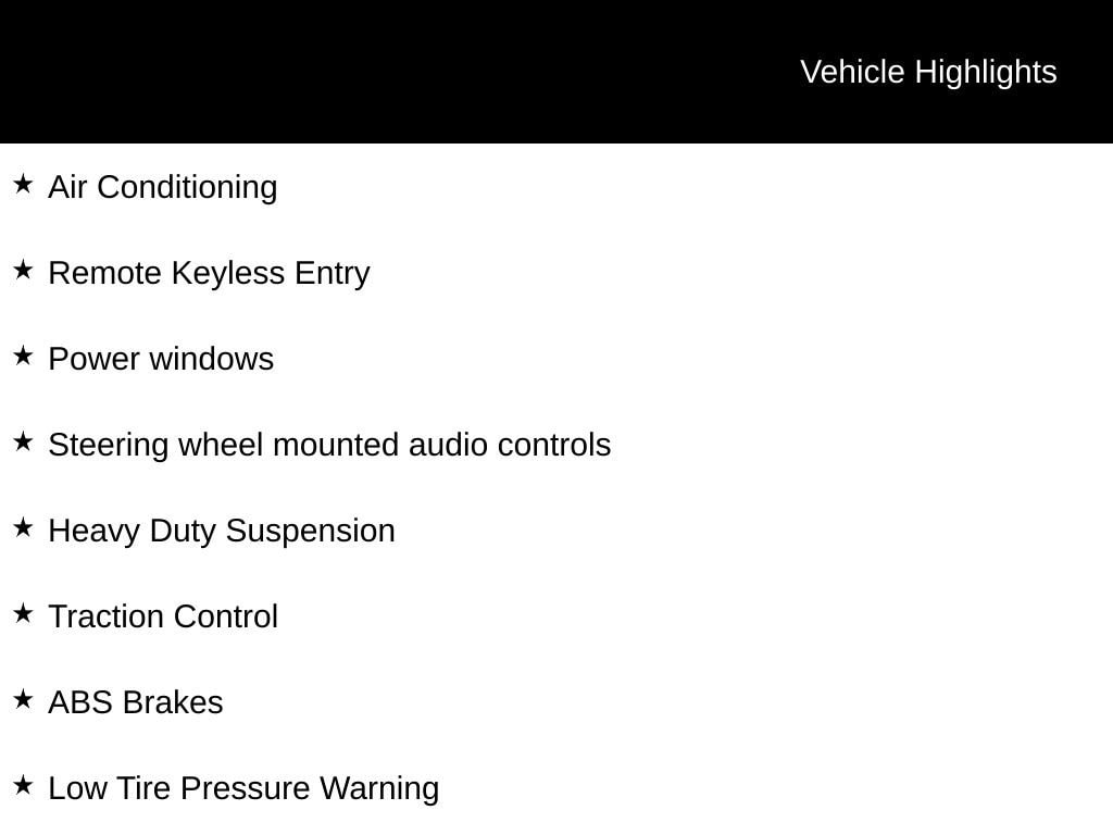 3.86 Axle Ratio, 4 Speakers, 4-Wheel Disc Brakes, 5.0 Touchscreen Display, ABS Brakes, Air Conditioning, AM/FM Stereo, Bodyside moldings, Brake assist, Center Wheel Cap, Cloth Bucket Seats, Driver door bin, Electronic Stability Control, Front Bucket Seats, Heavy Duty Suspension, Illuminated entry, Integrated Voice Command w/Bluetooth, Low Tire Pressure Warning, Media Hub (USB, AUX), Media Input Hub, ParkView Rear Back-Up Camera, Power windows, Quick Order Package 21A, Radio: Uconnect 3 w/5 Display, Remote Keyless Entry, Side Wall Paneling Lower, Side Wall Paneling Upper & Lower, Steering Wheel Mounted Audio Controls, Steering wheel mounted audio controls, Telescoping Steering Wheel, Traction Control, Trip Computer, Turn signal indicator mirrors, Variably intermittent wipers, Wheels: 16 x 6.0 Steel.