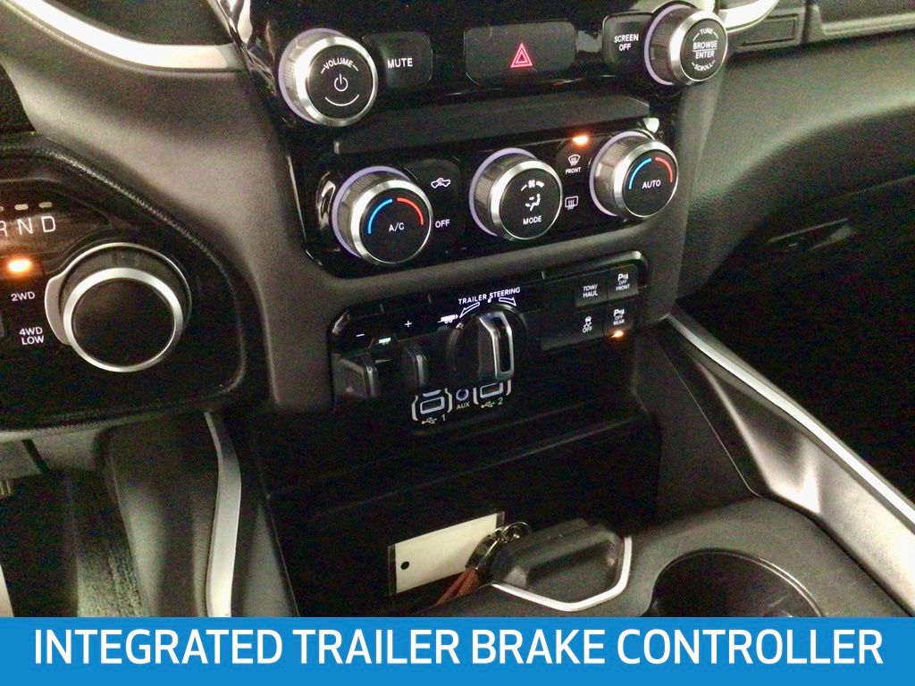 Clean CARFAX! CARFAX One-Owner! This Ram 1500 Big Horn/Lone Star has many features and is well equipped including, Apple CarPlay, 20" Black Aluminum Wheels, 2nd Row In Floor Storage Bins, 4G LTE Wi-Fi Hot Spot, 5-Year SiriusXM Traffic Service, 5-Year SiriusXM Travel Link Service, 6 Speakers, 8.4" Touchscreen Display, Add Class IV Receiver Hitch, Air Conditioning ATC w/Dual Zone Control, AM/FM Stereo, Apple CarPlay, Auto-Dimming Exterior Driver Mirror, Auto-Dimming Rear-View Mirror, Big Horn Level 1 Equipment Group, Black Exterior Mirrors, Black Premium Power Mirrors, Class IV Receiver Hitch, Cluster 3.5" TFT Color Display, Delay-off headlights, Disassociated Touchscreen Display, Exterior Mirrors Courtesy Lamps, Exterior Mirrors w/Supplemental Signals, Foam Bottle Insert (Door Trim Panel), For Details, Visit DriveUconnect.com, For More Info, Call 800-643-2112, Front Center Armrest w/Storage, Front wheel independent suspension, Fully automatic headlights, Glove Box Lamp, Google Android Auto, GPS Antenna Input, GPS Navigation, HD Radio, Heated door mirrors, Illuminated entry, Integrated Center Stack Radio, Integrated Voice Command w/Bluetooth, Leather steering wheel, Low Tire Pressure Warning, MOPAR Front & Rear Rubber Floor Mats, Outside temperature display, Overhead console, ParkSense Front/Rear Park Assist w/Stop, ParkView Rear Back-Up Camera, Power 4-Way Driver Lumbar Adjust, Power 8-Way Driver Seat, Power Adjustable Pedals, Power door mirrors, Power-Folding Mirrors, Radio: Uconnect 4C Nav w/8.4" Display, Rear Dome w/On/Off Switch Lamp, Rear Power Sliding Window, Rear step bumper, Rear Window Defroster, Remote Keyless Entry, Remote Start System, SiriusXM Radio Service, SiriusXM Satellite Radio, SiriusXM Traffic Plus, SiriusXM Travel Link, Steering wheel mounted audio controls, Sun Visors w/Illuminated Vanity Mirrors, Telescoping Steering Wheel, Tilt Steering Wheel, Traction Control, Trailer Brake Control, Trailer Light Check, Trailer Reverse Steering Control, Trailer Tire Pressure Monitoring System, Trailer Tow Group, Trip Computer, Uconnect 4 w/8.4" Display, Universal Garage Door Opener, USB Host Flip.