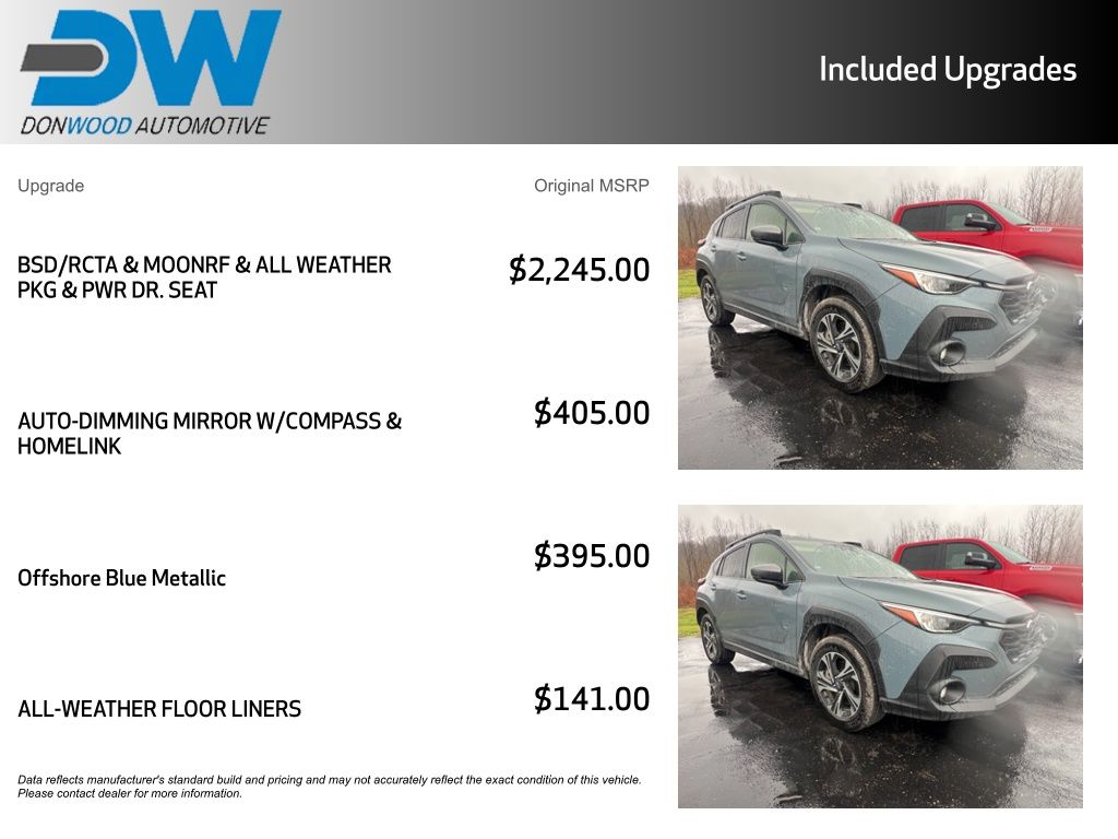 Clean CARFAX! CARFAX One-Owner! A complimentary Lifetime Powertrain Limited Warranty is included with this Subaru Crosstrek Premium!, This Subaru Crosstrek Premium has many features and is well equipped including, Apple CarPlay, Power Moonroof, Heated Seats, Blind Spot Monitoring, All-Wheel Drive, 10-Way Power Driver's Seat, Air Conditioning, All-Weather Floor Liners, All-Weather Package, Auto High-beam Headlights, Auto-Dimming Mirror w/Compass & HomeLink, Automatic temperature control, Blind Spot Detection w/Rear Cross-Traffic Alert, BSD/RCTA & Moonrf & All Weather Pkg & Pwr Dr. Seat, Dual-Zone Automatic Temperature Control, Exterior Parking Camera Rear, Fully automatic headlights, Heated Exterior Mirrors, Heated Front Seats, Heated Wipers, Power Moonroof, Premium Cloth Upholstery, Radio: Subaru STARLINK 11.6" Multimedia Plus Sys, Split folding rear seat.