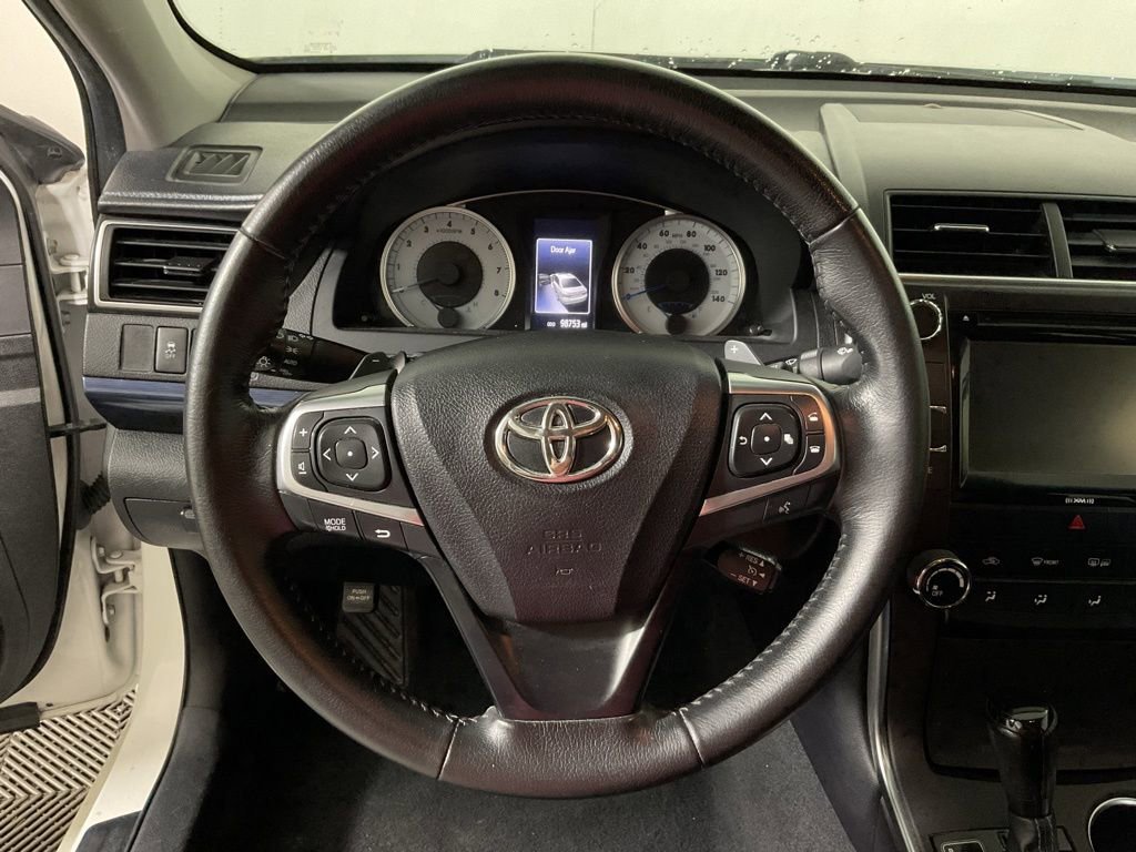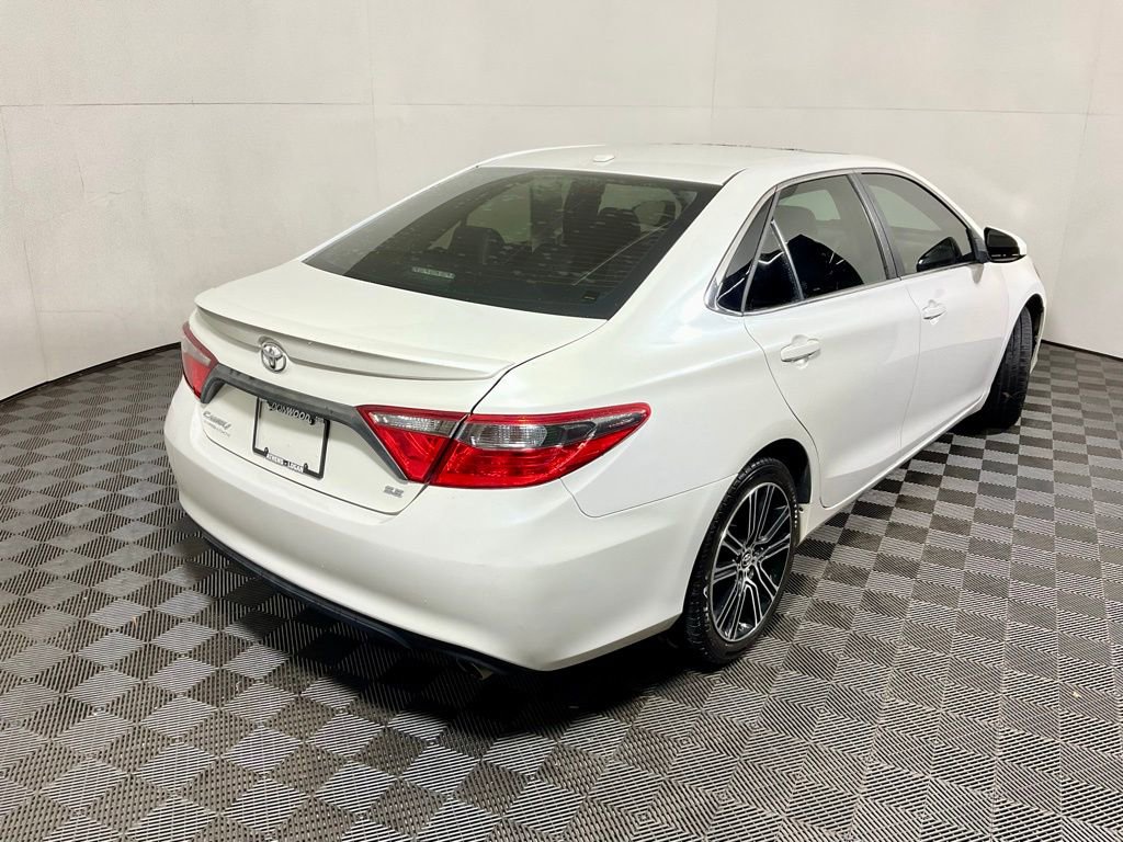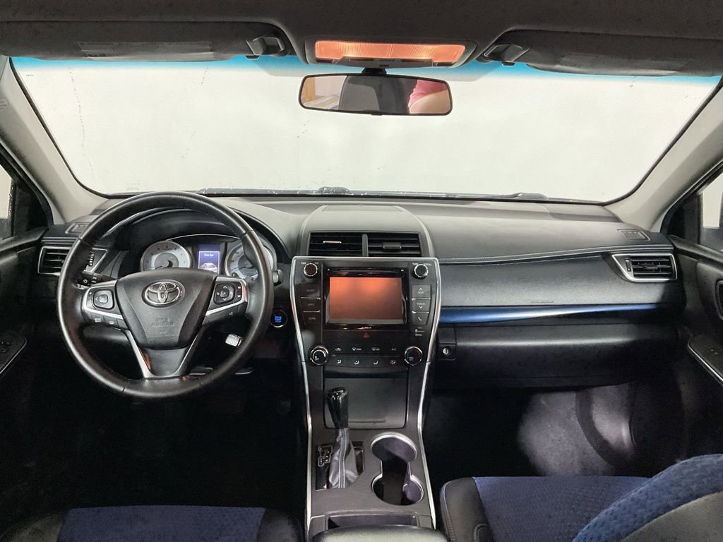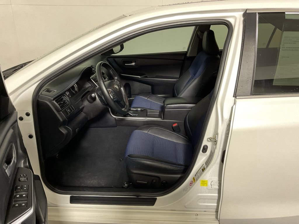 Black/Blue w/Sport Fabric Softex-Trimmed Front Seat Trim, This Toyota Camry SE has many features and is well equipped including, Power Moonroof, Sport Fabric Softex-Trimmed Front Seat Trim, Special Edition Package - Blizzard Pearl, Air Conditioning, Brake assist, Delay-off headlights, Electronic Stability Control, Exterior Parking Camera Rear, Front Bucket Seats, Fully automatic headlights, Heated door mirrors, Leather steering wheel, Overhead console, Panic Alarm, Power door mirrors, Power driver seat, Radio: Entune Audio Plus, Remote Keyless Entry, Speed control, Sport steering wheel, Steering wheel mounted audio controls.